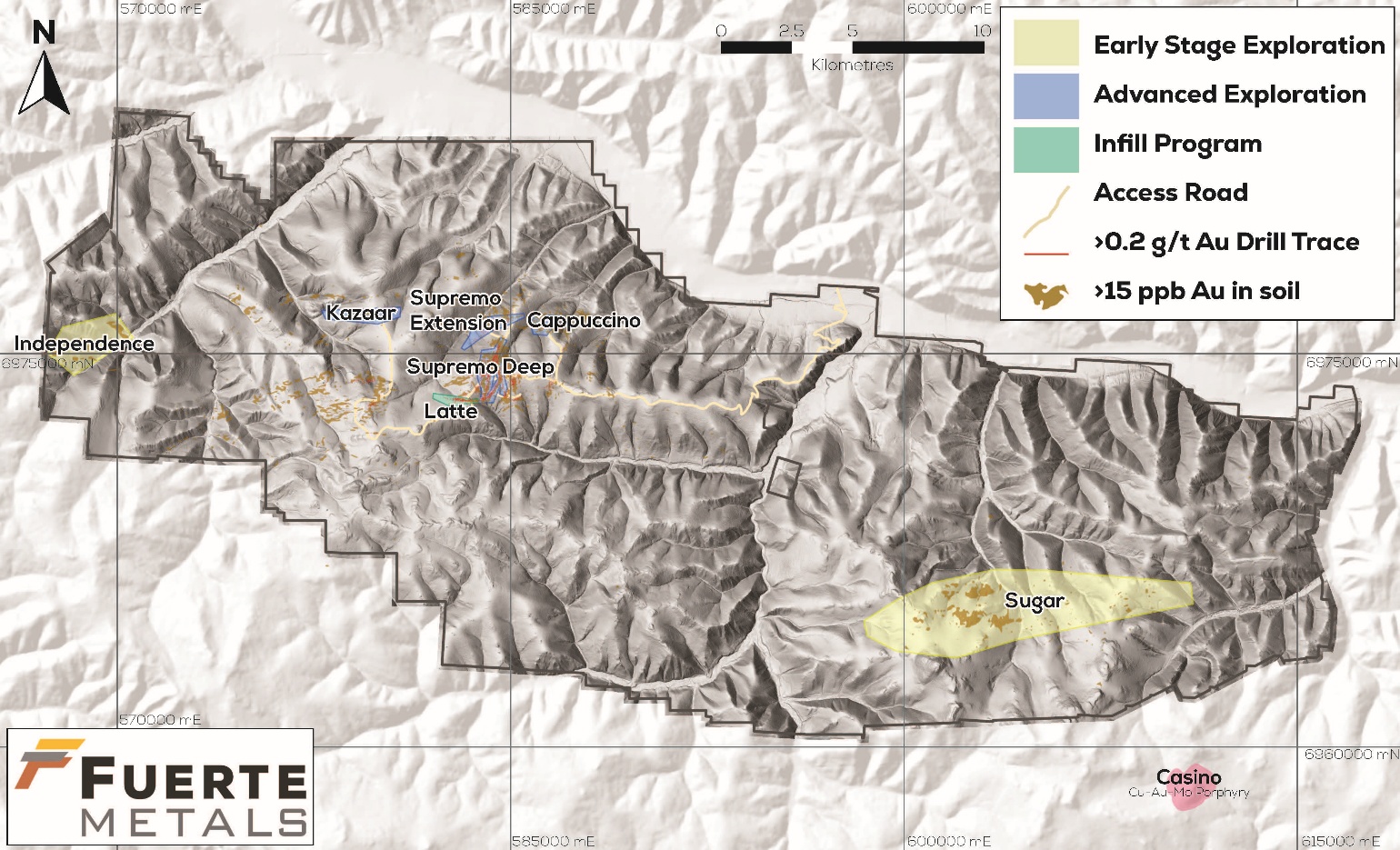 Tim Warman, CEO of Fuerte Metals stated: “The Coffee Project has been a transformative acquisition for Fuerte, and we are rapidly advancing the project towards a construction decision in early 2027. This drilling program is an integral part of that process and is aimed at building up the Measured and Indicated resource base for inclusion in the Feasibility Study currently underway. The program will begin at the Supremo Extension zone, which is currently one of the highest-grade portions of the Coffee deposit. Because Supremo Extension is a more recent discovery, the drilling density is lower, and the bulk of the resource is currently classified as Inferred, so an early goal of the drilling program is to convert a significant portion of that resource to the Indicated category.”