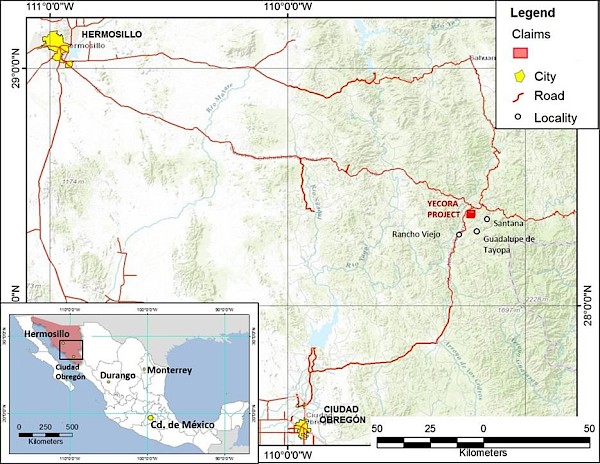 Figure 1: General Location Map of the Yecora Project