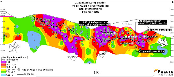 Tim Warman, Fuerte’s CEO, commented: “These most recent holes were successful in helping in the expansion eastward of several high-grade zones within the Guadalupe vein system, as well as expanding westward a new high-grade area recently discovered in the Los Ingleses vein system. Both high-grade areas remain open for further expansion supporting the theory that this is a large system with multiple untested veins.