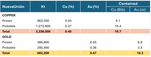 - NuevaUnión is a joint venture between Teck and Newmont Mining and currently hosts Proven and Probable Mineral Reserves* of 19.7 billion pounds of copper and 10.3 million ounces of gold (Teck 2024 Annual Information Form)